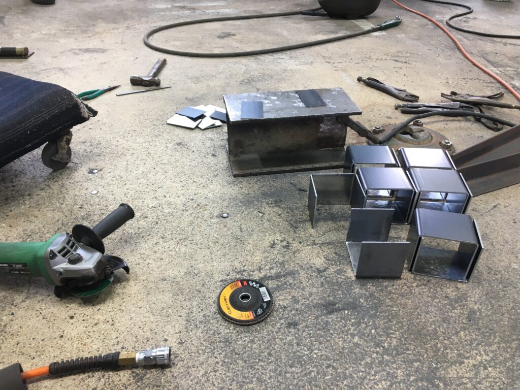素材の角を削り取り(面取り)、溶接時の付着物を除去し(溶接ビード取り・スパッタ取り)、